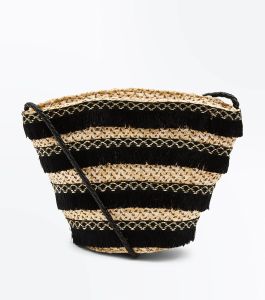 black-tassel-stripe-straw-bucket-bag-newlook £15.99