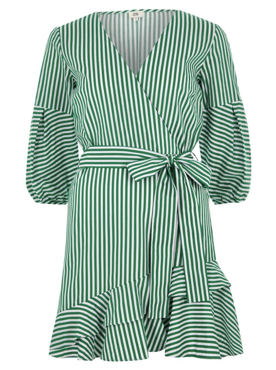 Green stripe frill hem tie waist dress £46 river island