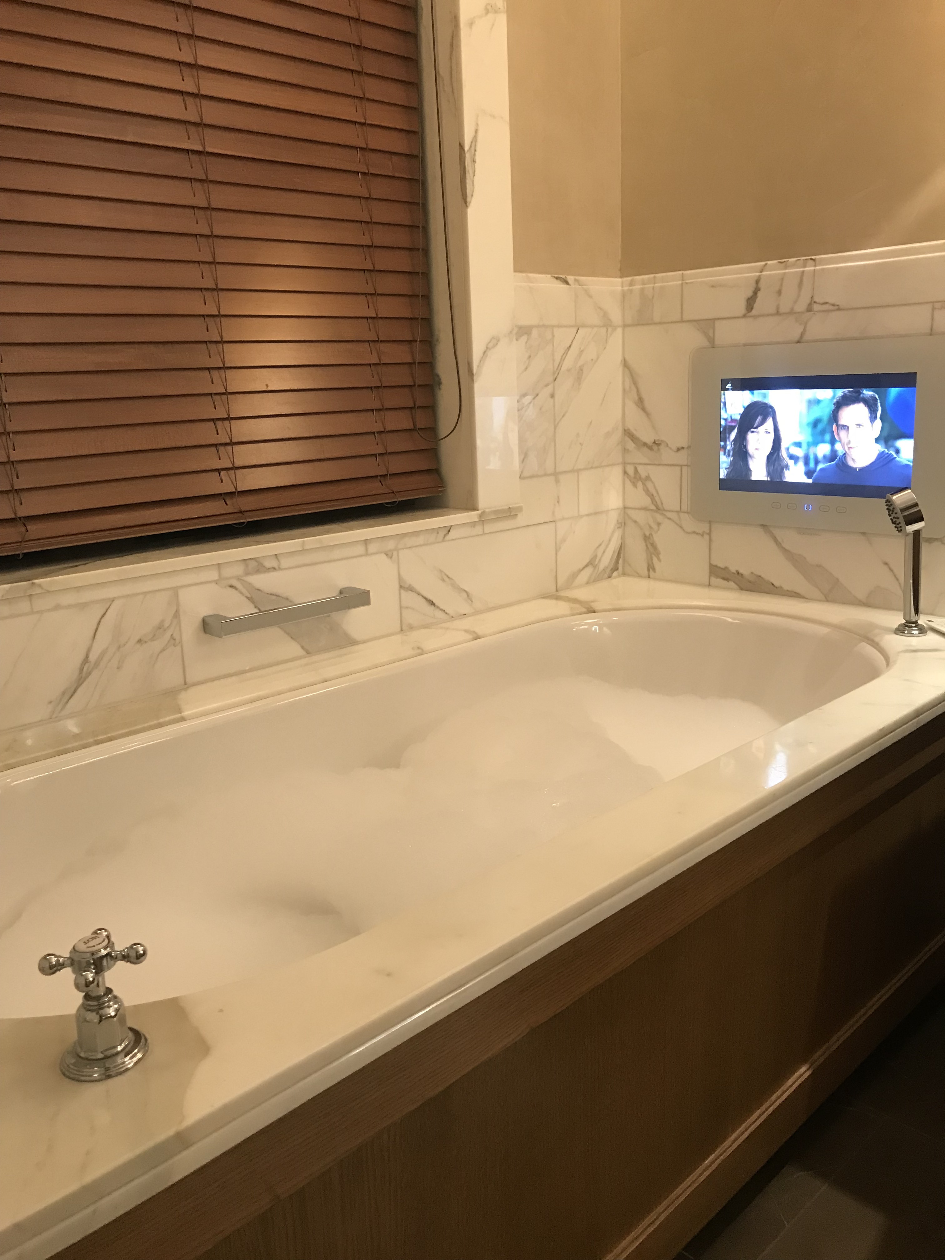 The first weekend of December was a very exciting one. We got our first Christmas tree together (can I get an awwwww?) and then we spent a night at Corinthia London. With a generous employee rate, we were able to sample how the other half live. Tele in the bath, an amazing waterfall shower and a spa that you never want to leave!