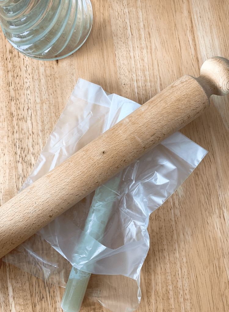 -Remove your candle and place into a sandwich bag (so you don’t get wax on your rolling pin).