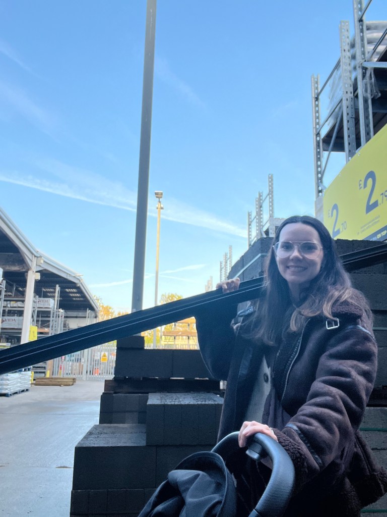The first stop was B&Q, one of my favourite haunts. Out to the builder’s yard with the pram to pick up some guttering. One length came in at around £8. I did get a few stares as I carried them on my shoulder to the till – but I do love being a mum that does it all.